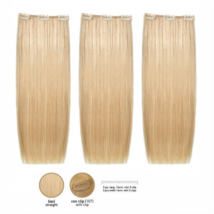 Clip System tecnica rapidissima e di utilizzo semplice e veloce che permette di fissare fasce di diverse dimensioni di capelli già tessuti.