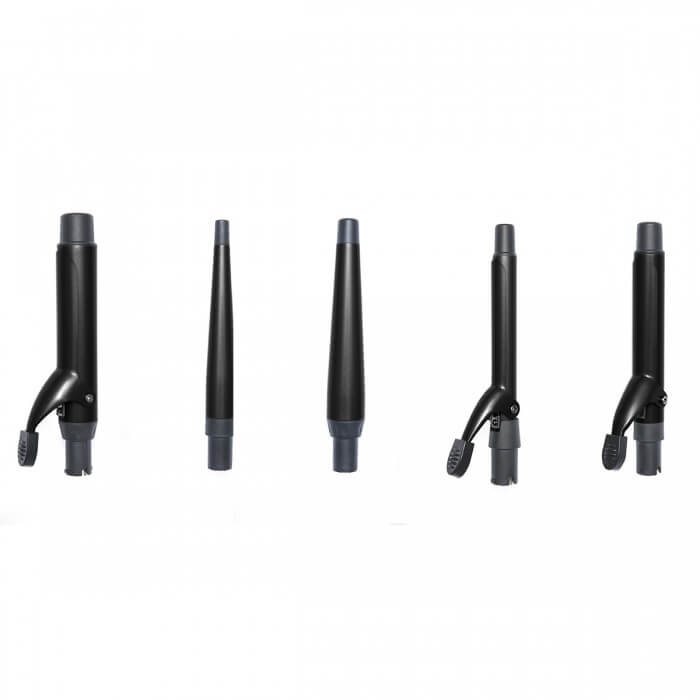 Si tratta di uno styler cinque in uno che monta sulla stessa base ferri intercambiabili in titanio con misure differenti.