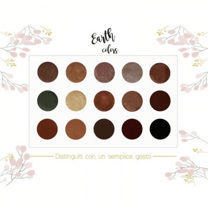 Palette occhi eyeshadow Earth Colors è la palette dai colori caldi per eccezione. Ogni cialda è unica nel suo genere! Riesce a soddisfare ogni tipo di look, dal giornaliero a quello serale.