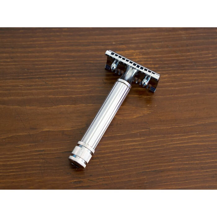 Rasoio doppia lama cromato. Manico grande.